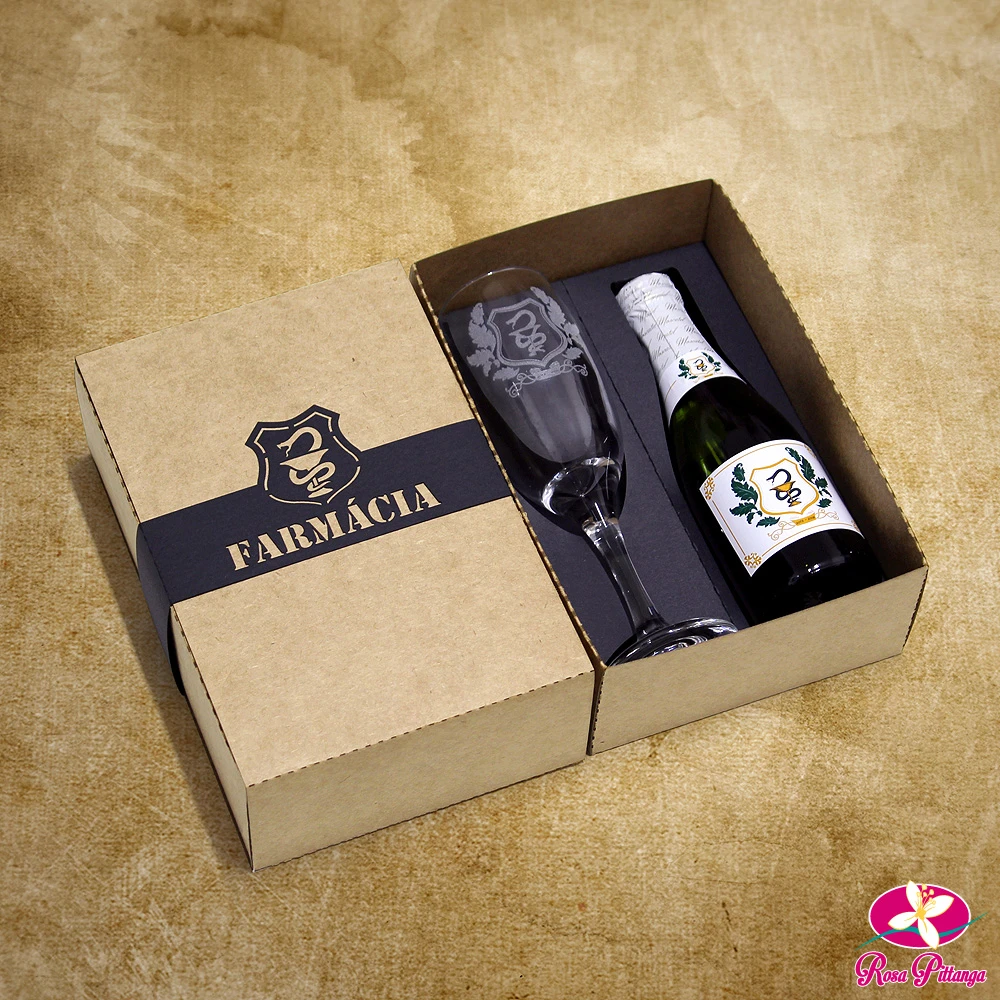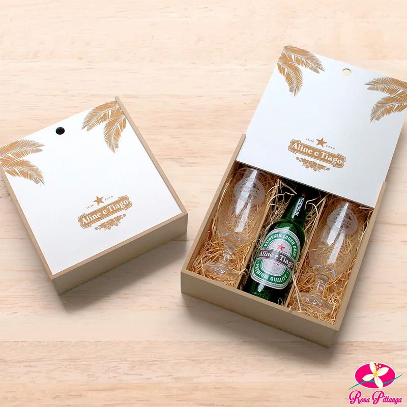 As caixas em papelão Paraná ou MDF, combinadas com taças ou copos e espumante ou vinho, são um verdadeiro sucesso em eventos como casamentos e formaturas.