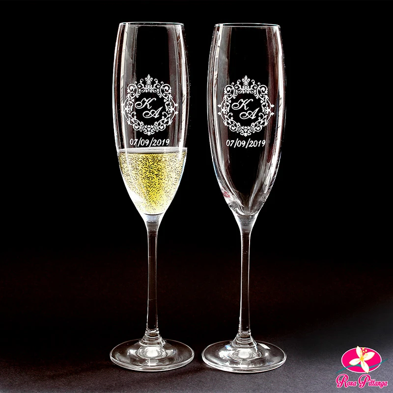A taça para champanhe de cristal personalizada, seja para casamentos, formaturas, aniversários ou celebrações corporativas.